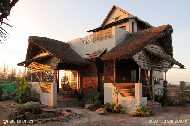 Tamil Nadu, India. La casa se asienta sobre una base de piedra