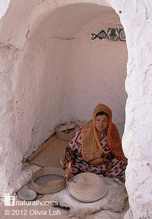 El interior de las casas cueva (izquierda) está blanquedo con cal