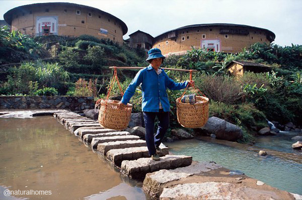 earth walls on top. The earth used to build a tulou is mixed with sand, silt from the river, egg