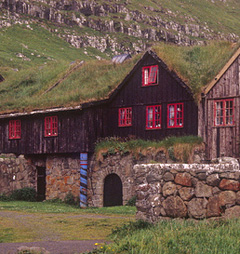 is the turf roofed Roykstovan farmhouse at Kirkjubour on the Faroe