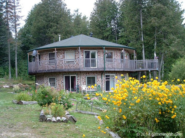 Canada. A 38ft (11.6m) diameter cordwood home, now a hotel,