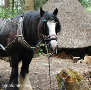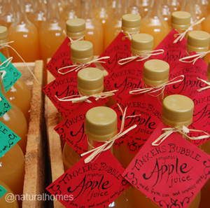horse and cow fields and orchard the other side of the woodland. They press apple juice for